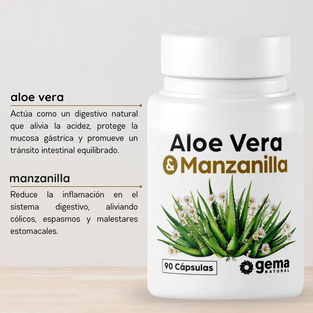 Actua como un digestivo natural que alivia la acidez, protege la mucosa gastrica y promueva un transito intestinal equilibrado. Reduce la inflamacion en el sistema digestivo, aliviando colicos, espasmos y malestares estomacales.